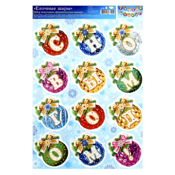 Наклейка ПВХ 33*50см Елочные шары Мир открыток 8-32-5028А