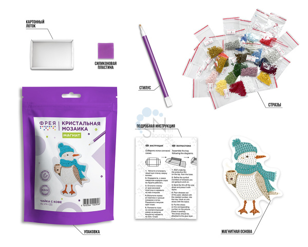 Мозаика алмазная Магнит 8,5*12см Фрея Чайка с кофе ALVM-125