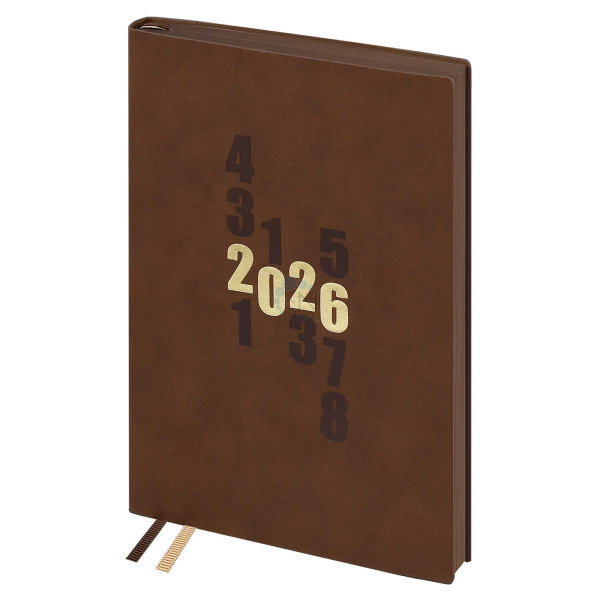 Ежедневник А5 дат 2026г интегр обл к/з 176л Escalada Замша тонир 2ляссе тисн фольг коричн срез 70266 коричневый