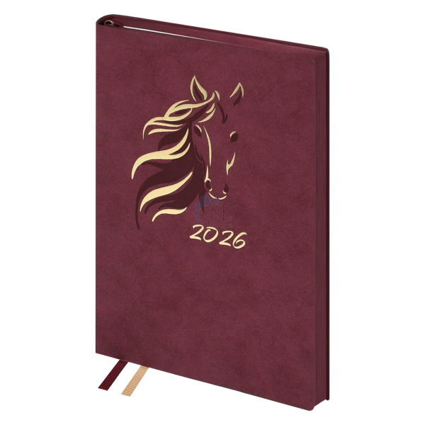 Ежедневник А5 дат 2026г интегр обл к/з 176л Escalada Замша тонир 2ляссе тисн фольг борд срез 70267 бордовый