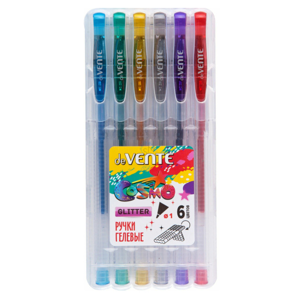 Набор гелевых ручек 6цв 6шт 1,0мм блестки прозрачный корпус deVENTE Cosmo Glitter 5051040 пласт/уп
